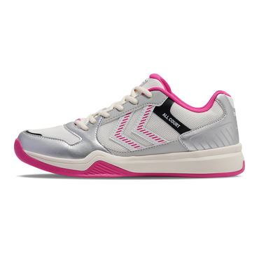 Der ALL COURT ist ein vielseitiger Hallenschuh mit einem Obermaterial aus PU und Mesh, das sowohl höchst strapazierfähig und als auch äußerst atmungsaktiv ist. Dieser Schuh verfügt über TPU-Hotmelt-Verstärkungen, eine nicht abfärbende TPR-Außensohle und eine verstärkte Innenseite mit einem Power Shield. Er bietet Komfort und Stabilität dank der reaktionsfreudigen EVA-Zwischensohle, der weichen Fersen- und Zungenpolsterung und der internen Fersenkappe.